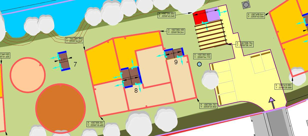 - 1 local associatif (9 m²), 1 local technique, 1 pergola, 1 fontaine d’eau potable, 1 zone de déchargement, des zones tampon le long des habitations.